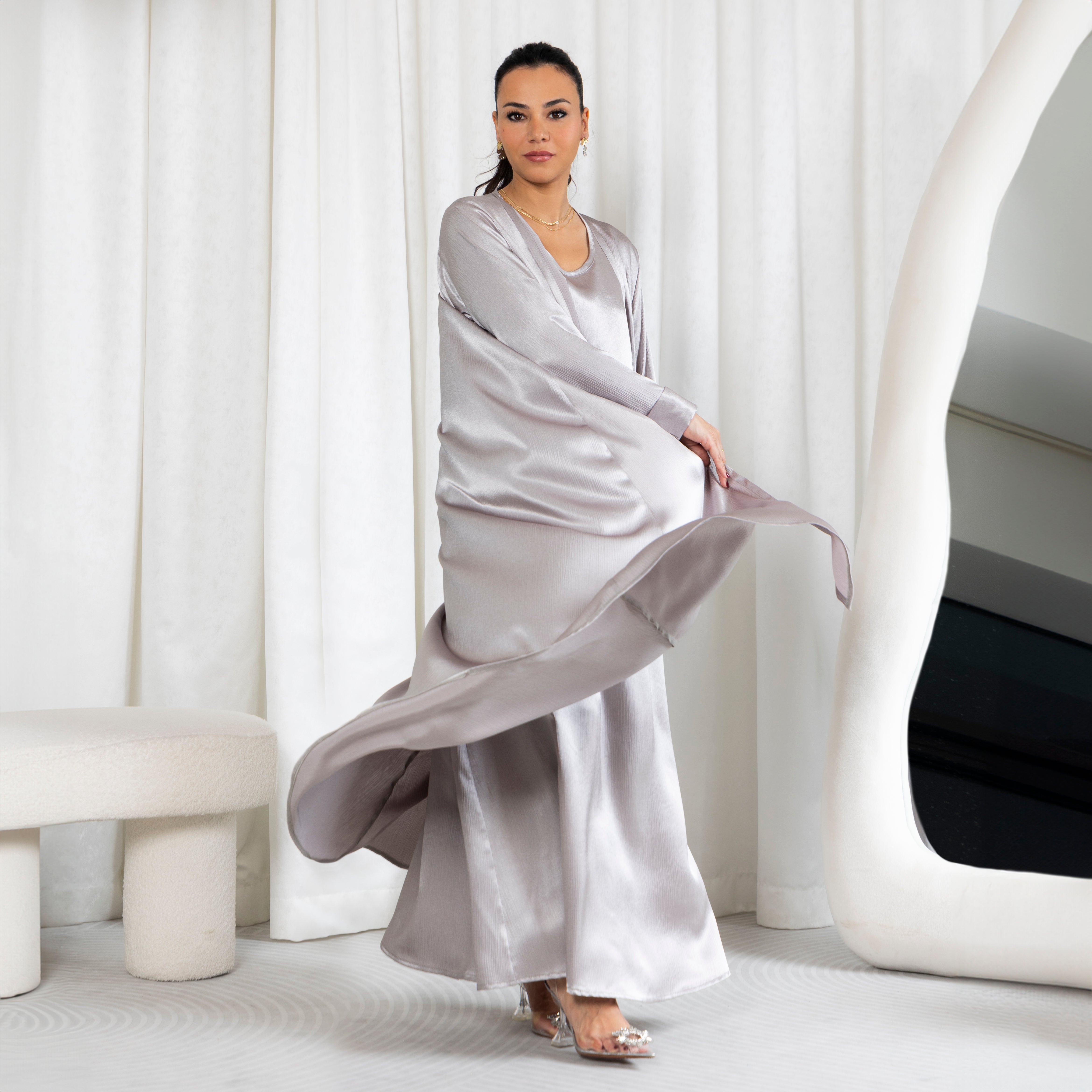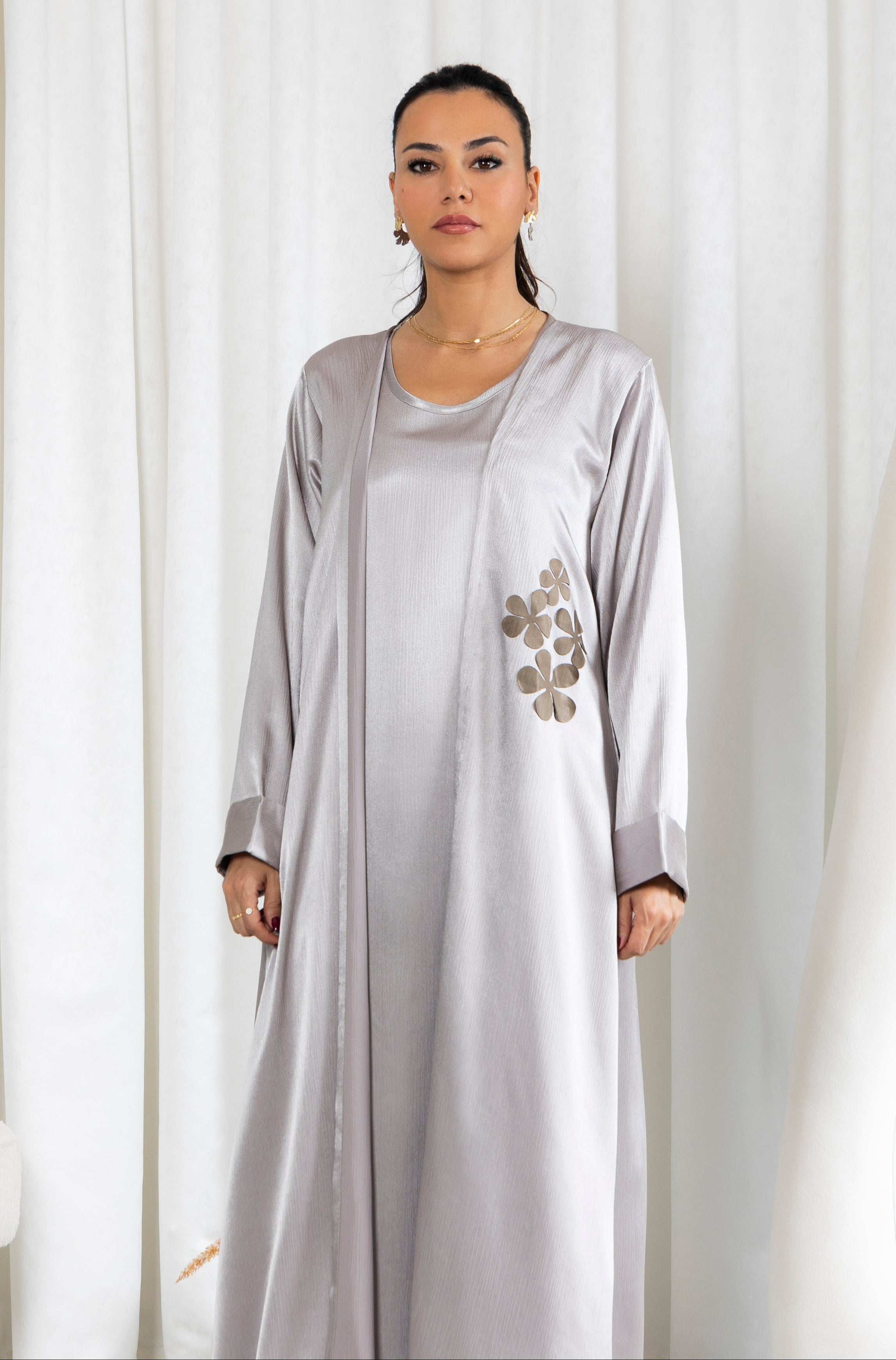 • طقم ٣ قطع: عباية، فستان داخلي، وشيلة